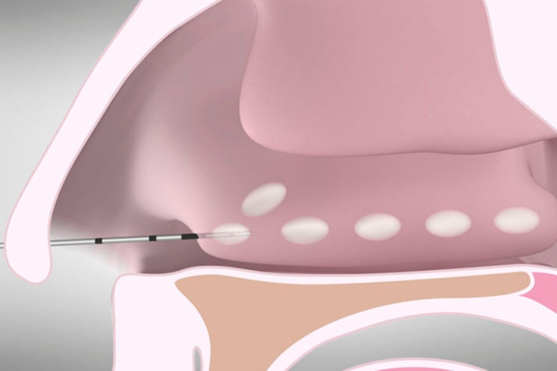 This procedure involves insertion of a needle like device through the front of the inferior turbinate following local anesthesia. Through a series of ablations, the underlying vascular tissues in the inferior turbinate is reduced and replaced with scar. Following a period of healing which may take 4-6 weeks, nasal breathing is improved.